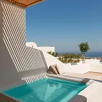 파티오, 일광판, 자쿠지가 있는 North Wind Luxury Suites 이아은 산토리니 화산섬에서 차로 15분 거리에 있습니다. 호텔은 이아 도심에서 2km 거리에 있으며 프레베자 공항에서 0.5km 떨어져 있습니다.